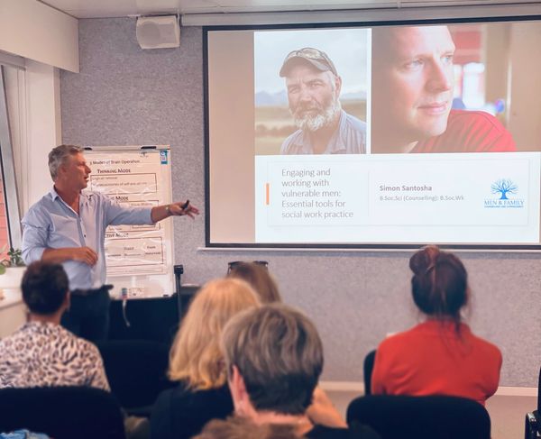 His expertise spans conferences, public speaking engagements, and specialised training programs, equipping practitioners with evidence-based practical tools and insights to better engage and support men and improve family relationships.